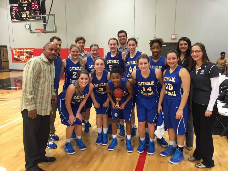 Megan Belke (13pts) leads Grand Rapids Catholic Central over Harper Woods Chandler Park